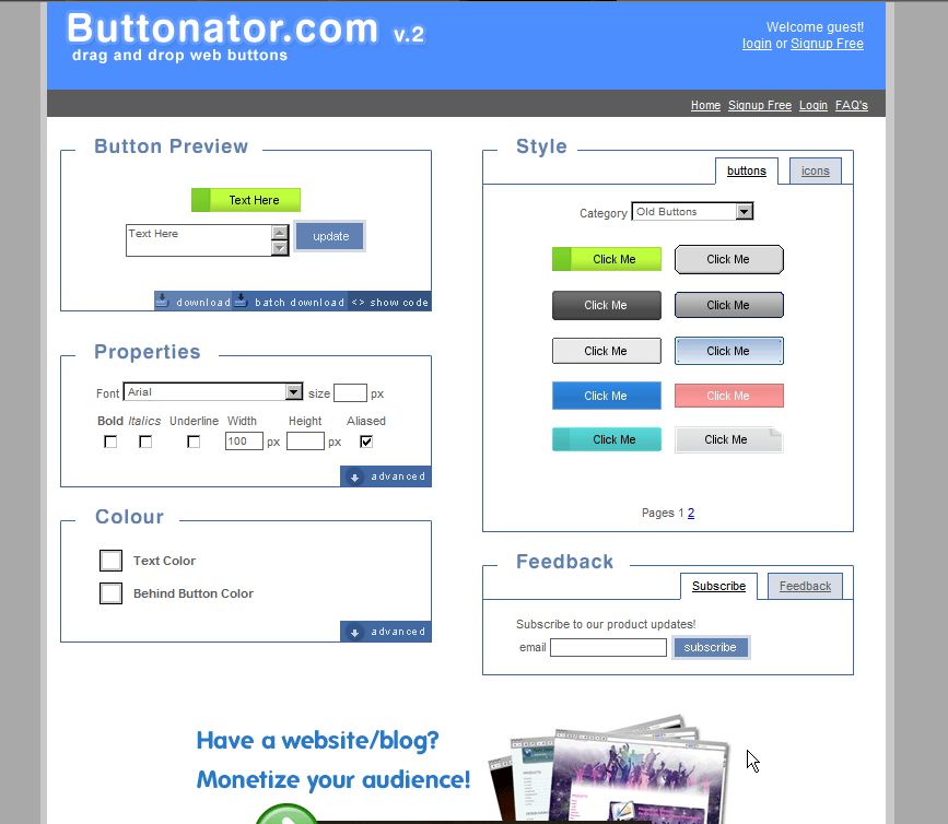 Buttonator は WEB2.0 風のバナーを作成出来るサイト。 あらかじめ用意されているバナーから好きなものを選択し、背景色やテキストの色を調整すれば簡単に作成できます。